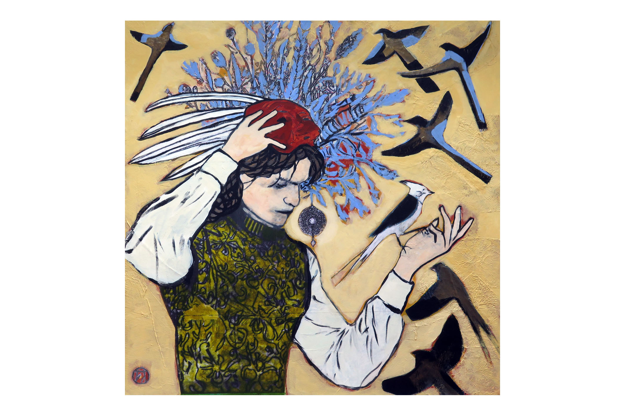 Nous traversons un pays ombreux et froid. Un charme de désenchantement tombe sur moi et me rend la vue. Le jeune homme assis près de moi a levé son masque rouge sombre et je peux détailler les traits de celui qui me pourchassait dans les couloirs du rêve […] Il se tient debout à l’avant du bateau ; à côté de lui, le nocher à deux visages conduit l’embarcation vers le royaume des morts.
